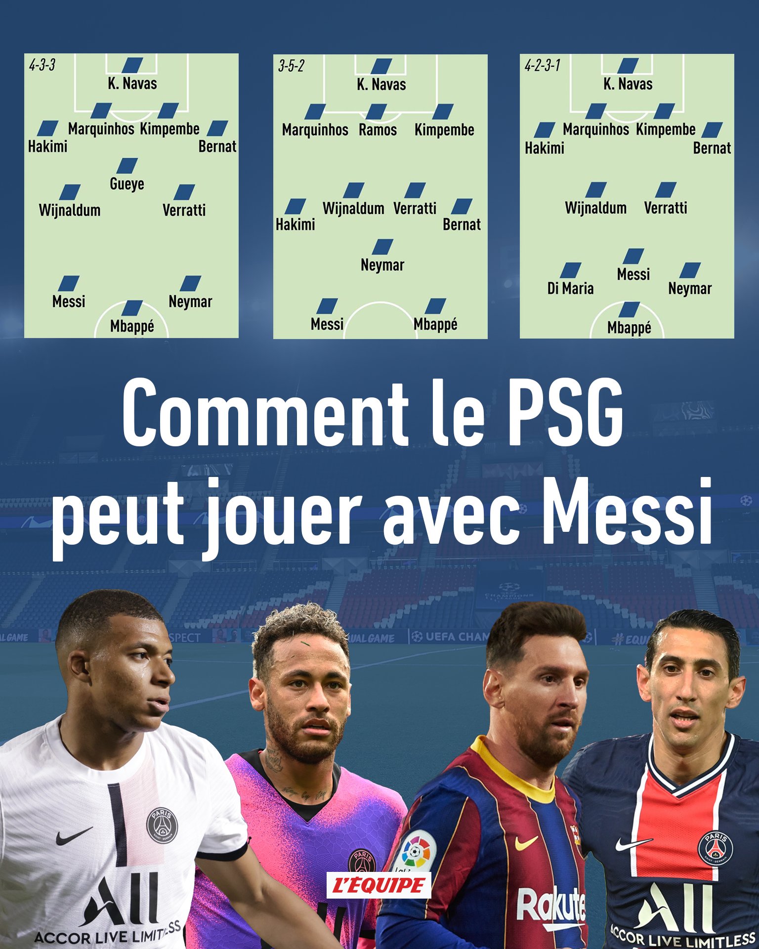 随着梅西正式加盟巴黎圣日耳曼,大巴黎新赛季的首发阵容也成了球迷们热议的焦点,法国权威媒体《队报》就给出了三套阵型可供选择。