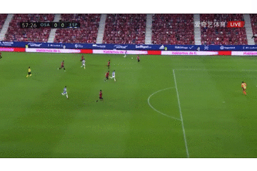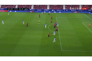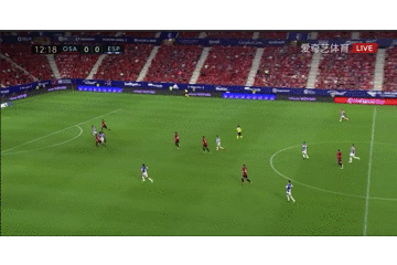 第28分钟,西班牙人发起反击,武磊在高空球争抢中扛开奥萨苏纳中卫乌奈-加西亚,随后传球遭对方封堵: