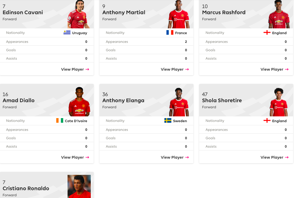 不过,根据今日英超联赛官网更新的内容显示,目前C罗与卡瓦尼两人的球衣号码均为7号,曼联俱乐部内部目前也在协调这一问题。