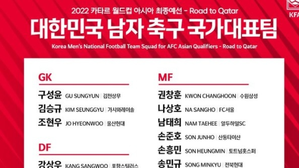 韩国12强赛大名单:孙兴慜领衔 黄喜灿在列