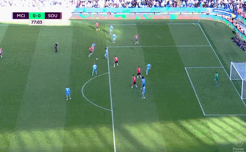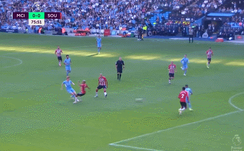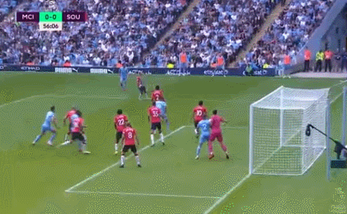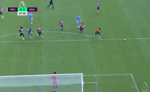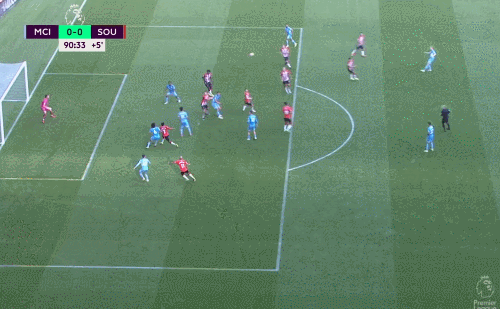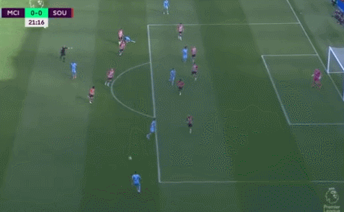 英超第五轮,曼城0-0战平南安普顿。上半场沃克右路传中,京多安抢点头球高出,格拉利什面对多人防守送出妙传,无人防守的斯特林兜射远角偏出,第41分钟,费尔南迪尼奥挑传后点,热苏斯抢点头球偏出。下半场沃克传球失误,反抢时在禁区内放倒对手,裁判回看VAR后没有判罚点球,第90分钟时斯特林补射破门,但是裁判回看VAR后判罚越位在先。