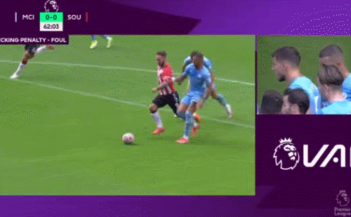 第60分钟,沃克传球失误后,反抢时在禁区内放倒对手,裁判回看VAR后没有判罚点球,曼城逃过一劫。