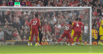 第37分钟,利物浦边路完成连续一脚出球配合后传中,中路蒂亚戈高速插上头球冲顶,瓜伊塔奋力将球扑出,随后迪奥戈-若塔门前一米面对空门凌空抽射将球打向了天空!
