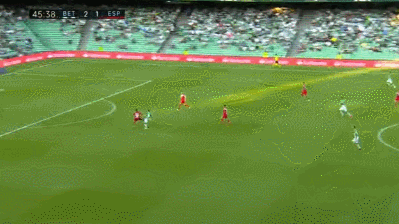 45+4' 贝莱林右路倒三角回敲,费基尔将球送入远角,贝蒂斯主场反超比分!