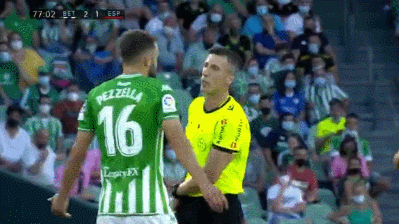 78' 主裁判观看VAR后改判,取消了黄牌判罚,向佩塞利亚出示红牌!