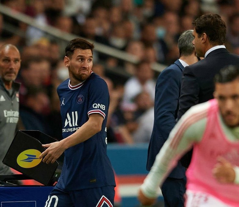 比赛中,梅西曾在上半场比赛主罚直接任意球击中球门立柱与横梁交界处,遗憾错失进球。下半场比赛,帕奎塔的进球让巴黎一度落后,在内马尔点射扳平比分后不久,巴黎主帅波切蒂诺选择了在第76分钟换下梅西。