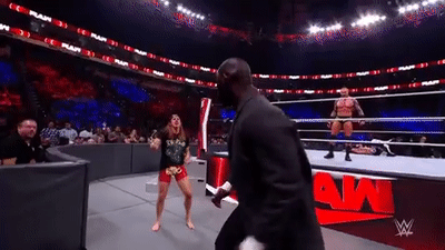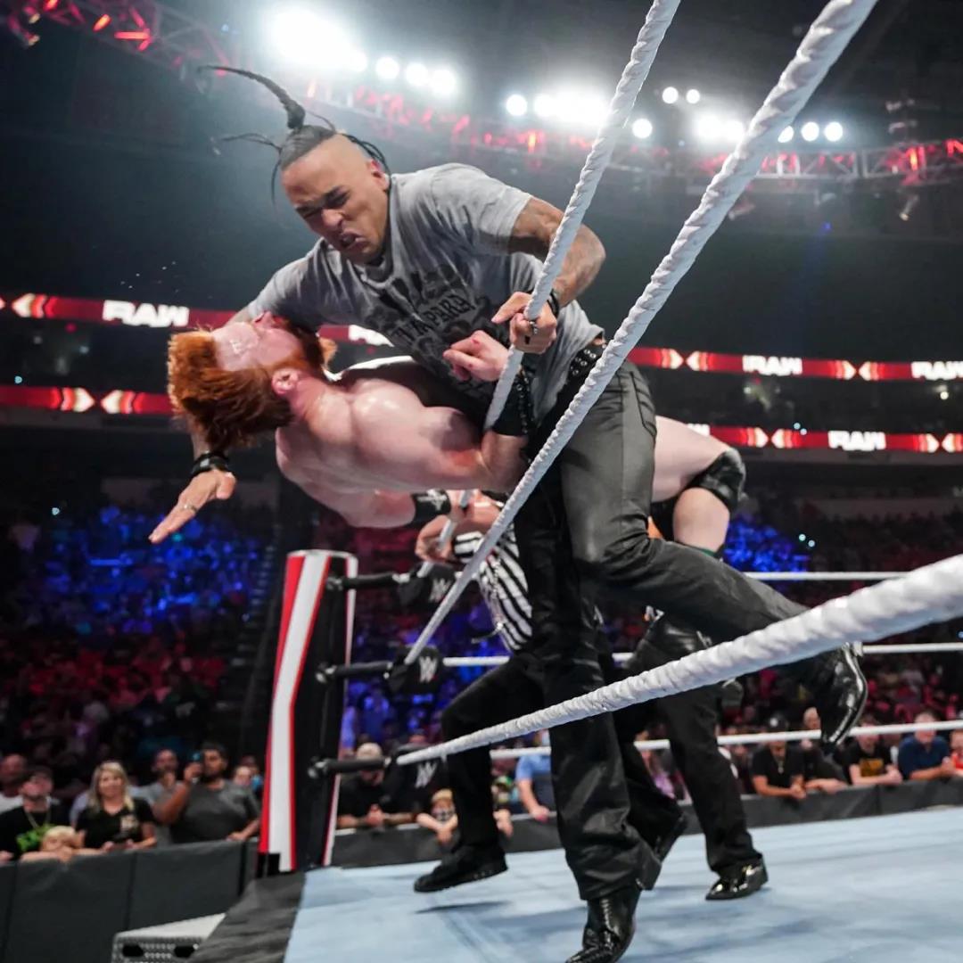 围绕RAW双打冠军头衔的恩怨继续在RK老铁与AJ斯泰尔斯和奥莫斯之间蔓延,今天兰迪-奥顿单打AJ,比赛开始没多久,奥莫斯就因为明显的拉拽动作被裁判判罚离场,不允许继续在场边观战。