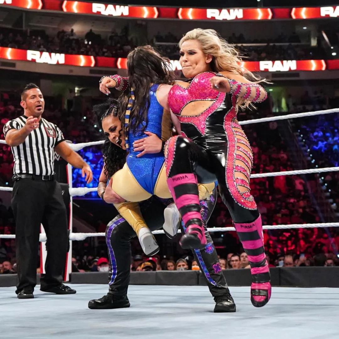 雷亚-里普利和妮琪A.S.H.今天挑战娜塔莉亚和塔蜜娜的WWE女双冠军头衔,面对经验丰富的两位前辈,雷亚和妮琪展现了新生代的活力和坚韧。