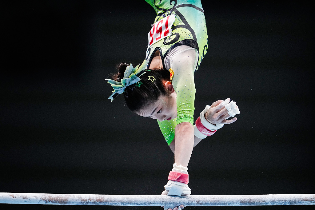 北京时间9月24日,全运会女子体操个人全能决赛,来自广西代表队的韦筱圆以四项总分55.064夺得金牌,广东选手欧钰珊获得银牌,另一名广东选手罗蕊获得铜牌。