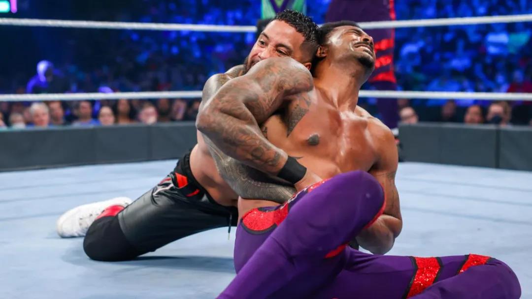 前天的SmackDown节目中,乌索兄弟无情围攻蒙特兹-福特,致使福特不得不带伤参加今天的SD双打冠军赛,虽然街头小子气势满满想要拿下胜利,但福特的伤成了这场比赛的伏笔,乌索兄弟的策略就是火上浇油,重点针对福特受伤的肋骨。