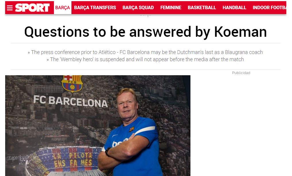 糟糕的比赛结果和一些声明看起来,荷兰人已经和更衣室拉开了距离。布斯克茨、罗贝托、皮克等人对科曼关于球队潜力的评论表达了不满,重要的是,科曼在没有任何队长留在场上的情况下结束了在光明球场的比赛。