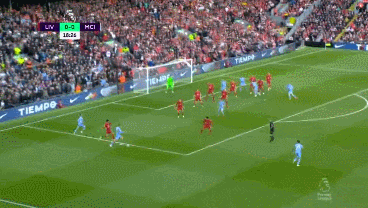 87' 利物浦定位球开出,埃德森出击失误,后点法比尼奥面对空门选择推射,罗德里及时回追完成救命铲断!