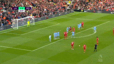 63' 萨拉赫主罚任意球直接旋近角,被人墙挡出后出了底线。