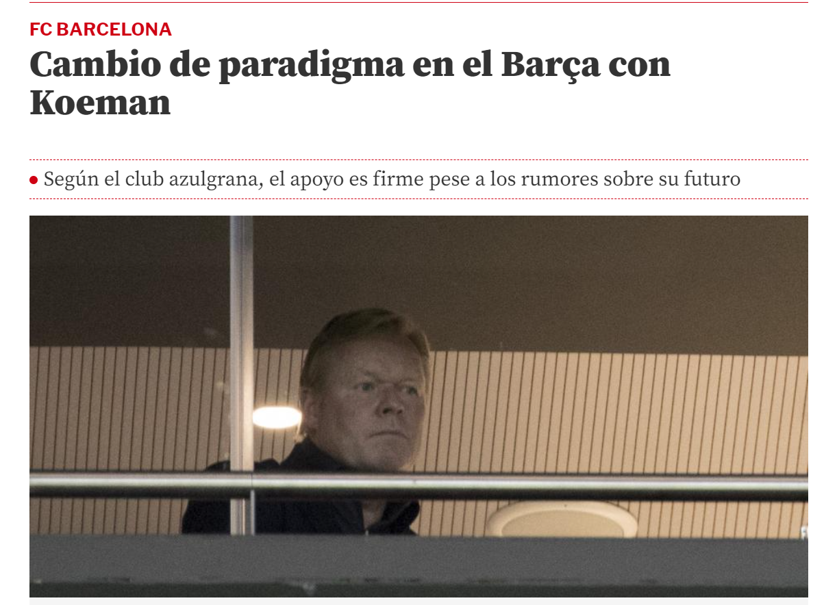 据《每日体育报》报道,拉波尔塔在对阵马竞的比赛前确定了科曼的留任,拉波尔塔表示科曼配得上被信任,而科曼也向拉波尔塔进行了解释。