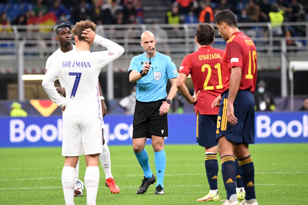 第二届欧洲国家联赛决赛,法国2-1逆转西班牙夺得冠军,但本场比赛中却出现了两个足以颠覆比赛结果的争议判罚,当值主裁判安东尼-泰勒的执法能力再度遭受质疑。