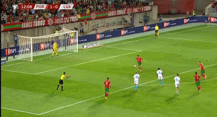 第8分钟,B席突破至禁区内制造对手犯规,裁判判罚点球。C罗主罚一蹴而就,葡萄牙1-0领先。
