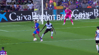 巴萨vs瓦伦西亚比赛第13分钟,德佩做球,法蒂禁区线附近推远角得手,将场上比分改写为1-1: