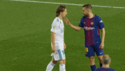 第32分钟,在皇马的一次战术犯规后,阿尔巴与莫德里奇打起口水仗,前者用右手掐住了魔笛的脖子,随后又有推搡,伊涅斯塔赶忙上前将两人分开,裁判对此并无表示,这也为接下来的一系列冲突埋下隐患。