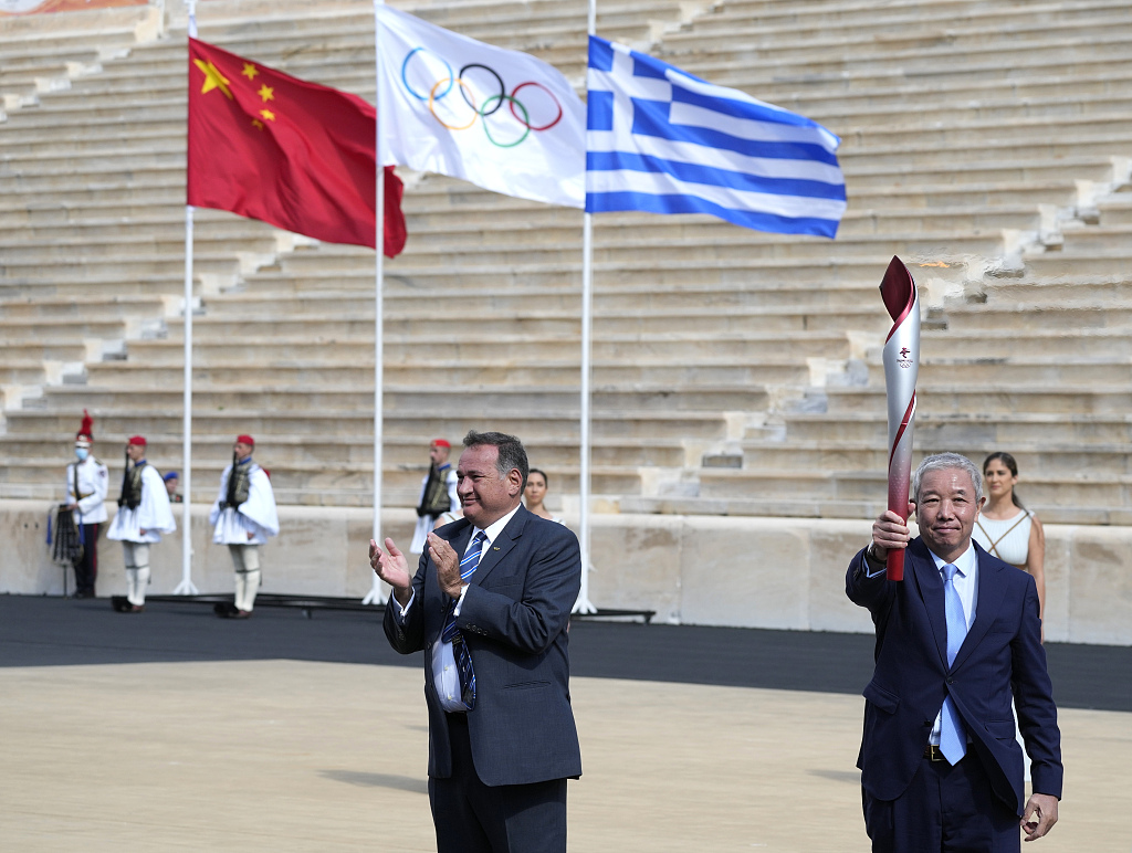 北京时间10月19日,北京冬奥会火种在希腊首都雅典的帕纳辛奈科体育场,正式由希腊奥委会交接给北京冬奥组委。仪式最后一棒火炬手为希腊越野滑雪和冬季两项运动员帕拉斯凯维·亚多普卢,亚多普卢接过火炬后,跑向了两名女祭司身边的火种盆,点燃火种盆,完成火炬传递。按照计划,北京冬奥会火种将保存在火种灯中由北京冬奥组委代表团带回中国。