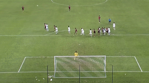 第15分钟,李东炅带球来到前场,禁区外围尝试一脚打门,皮球打高了。