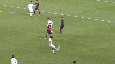 第105分钟,蔚山边路起球,洪喆插入禁区后停球过大,错失良机。