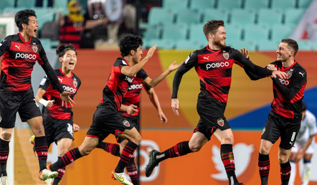 第90分钟,浦项前场定位球送入禁区,格兰特头球破门将比分扳为1-1!