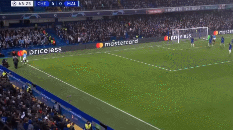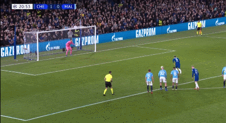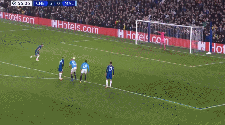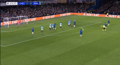 第13分钟,切尔西获得任意球机会,芒特主罚偏出球门。