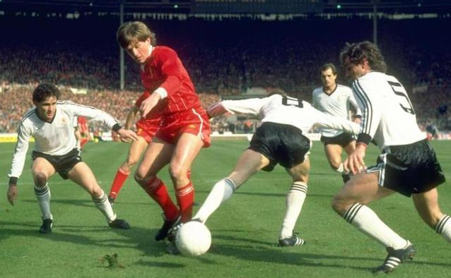 1982/83赛季的联赛杯决赛,有着“国王”美称的利物浦功勋肯尼-达格利什身披7号球衣留下了一张在比赛中带球对抗曼联多达4人包夹防守的经典影像,在他的带领下利物浦在温布利球场通过加时赛2-1逆转曼联、成就联赛杯三连冠伟业,以一座奖杯作为了献给老帅鲍勃-佩斯利的谢幕礼物。