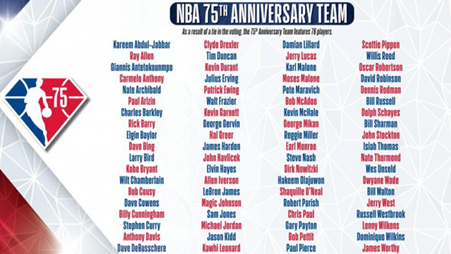 北京时间10月22日,NBA官方公布了最后一批历史75大巨星的名单。因为存在投票数相等的情况,最后一批共公布了26位球员。因此此次共有76位球星入选!