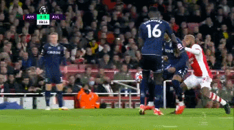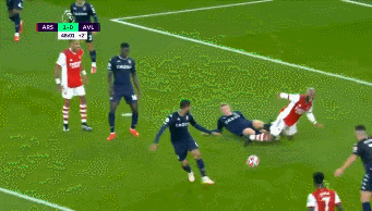 13' 明斯争高空球时手肘击打到了拉卡泽特的头部,后者痛苦倒地,裁判示意没有犯规。