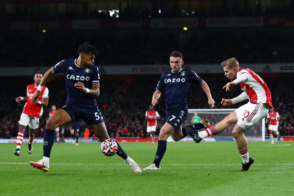 56' 阿森纳两脚传递形成反击,史密斯-罗左路带球突入到禁区随后起脚打门,皮球打在回追的明斯推上,随后折射击中立柱内侧弹进球门!阿森纳3-0领先维拉。
