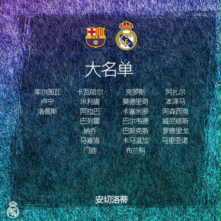 前锋:阿扎尔、本泽马、阿森西奥、维尼修斯、罗德里戈、马里亚诺