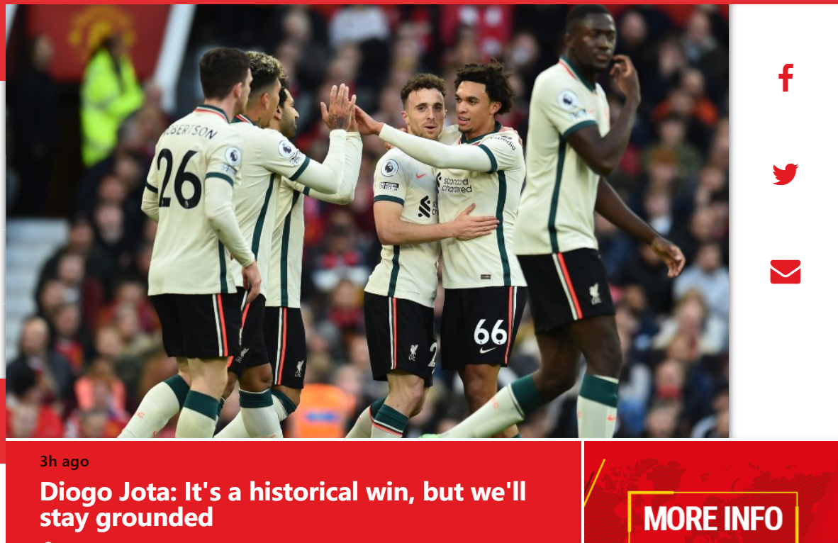 在5-0痛击曼联之后,红军前锋若塔接受了利物浦官网的采访,在访谈中他谈论了这一场历史性的胜利。