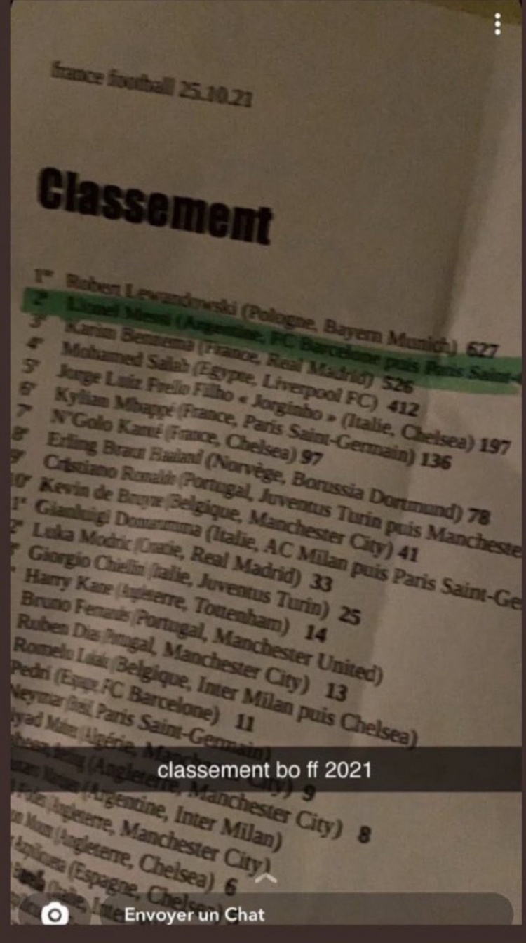 北京时间10月27日,网络上流传出一张疑似本年度金球奖最终排名的名单。其中莱万多夫斯基排名第一,梅西第二、本泽马第三。