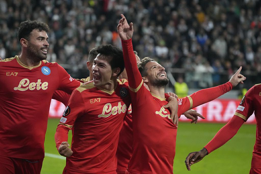 C组第4轮——那不勒斯客场4-1逆转华沙莱吉亚:上半时,马达托夫推射破门先下一城,泽林斯基击中横梁,埃尔马斯的射门被扑出。下半时,里贝罗远射中柱,泽林斯基造点后亲自主罚命中扳平,随后波利塔诺再度赢得点球,梅尔滕斯罚入勺子点球反超比分;佩塔尼亚直塞助攻洛萨诺射空门得手锁定胜局,补时阶段替补登场的欧纳斯挑球过人后抽射入网锦上添花。