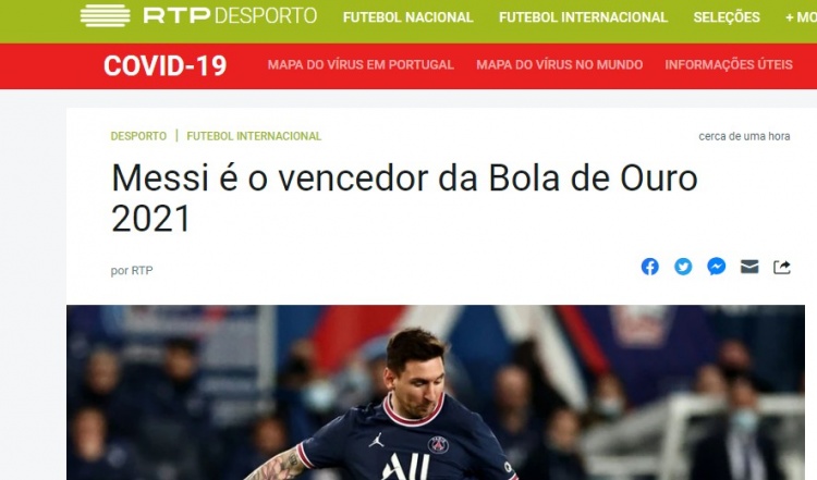 |葡媒:梅西是金球得主,法国足球杂志已告知他获奖消息