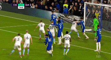 33' 詹姆斯右路传中,哈弗茨甩头攻门打破僵局!切尔西1-0领先伯恩利。