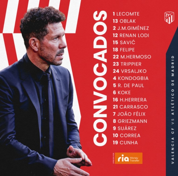 马竞战瓦伦西亚大名单