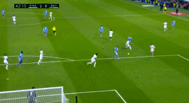 84' 卡塞米罗右路传中,阿扎尔起跳争顶甩头攻门稍稍偏出。
