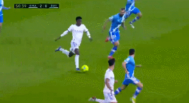 49' 维尼修斯带球突进连过两人随后起脚打门,皮球被拖后的巴列卡诺后卫挡出。