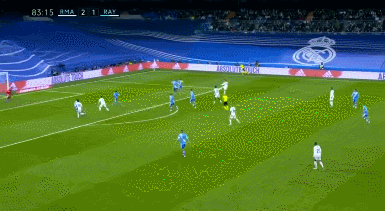 90+1' 巴列卡诺角球开出造成禁区内混战,克罗斯上演关键解围。