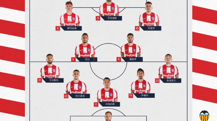 马德里竞技首发:13-奥布拉克、2-希门尼斯、15-萨维奇、22-埃尔莫索、23-特里皮尔(8' 24-弗尔萨利科)、5-德保罗(87' 7-菲利克斯)、6-科克、8-格列兹曼、9-苏亚雷斯(87' 16-埃雷拉)、10-科雷亚(73' 4-孔多比亚)、21-卡拉斯科
