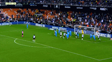 63' 瓦伦西亚角球开出,丹尼尔-沃斯小禁区内转身抽射击中门楣。