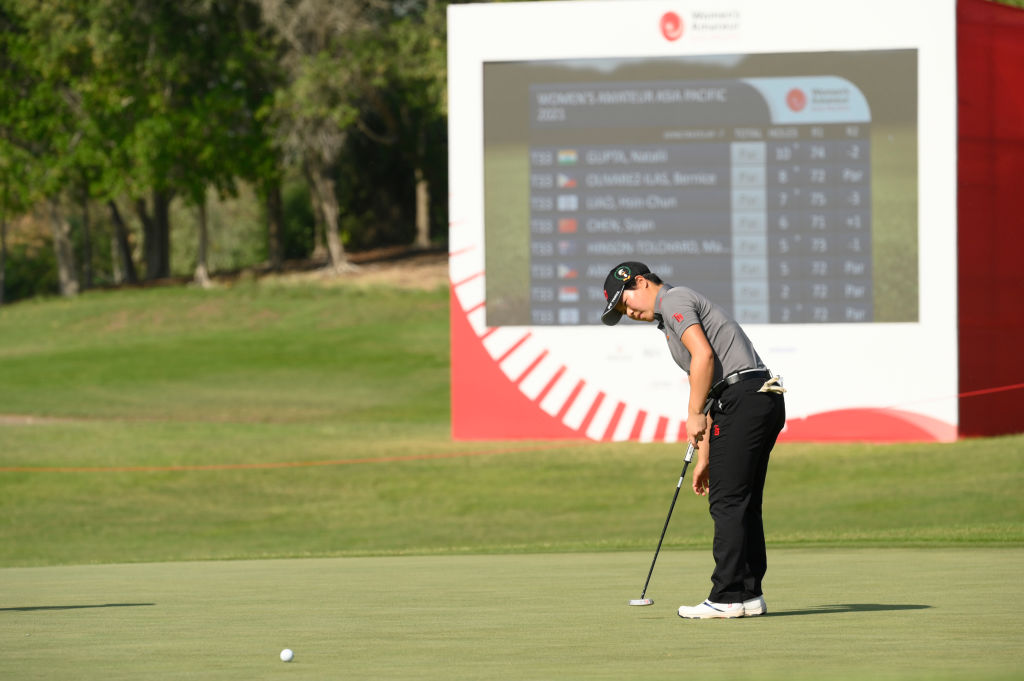 导语:北京时间11月12日,2021亚太女子业余锦标赛在阿布扎比高尔夫俱乐部完成了移动日的争夺。连续两轮领先的泰国选手翁特维拉普今日继续交出67杆的成绩,单独位列榜首。中国选手殷小雯交出69杆,位列T12,叶雷交出72杆,位列T23,陈丝妍交出76杆,位列T44。