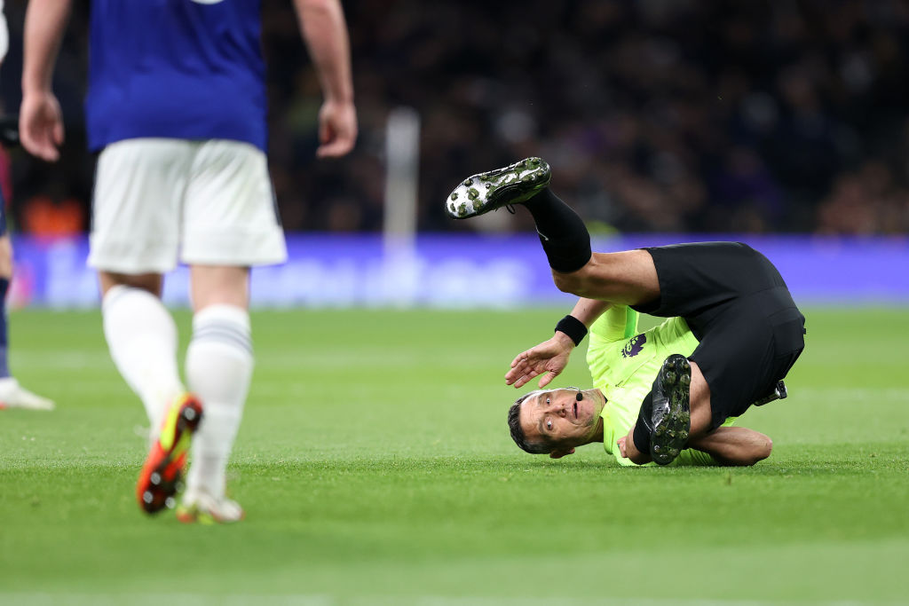 第35分钟,热刺后场出球,埃莫森将球交至霍伊别尔脚下,菲利普斯上前扑抢尝试就地将球权抢回,然而主裁判马里纳刚好站在他与霍伊别尔之间,情急之下菲利普斯竟然直接拉倒了主裁判,这哭笑不得的一幕发生后,主裁判并未向菲利普斯的行为出示黄牌。