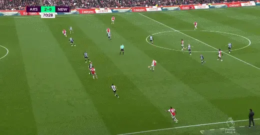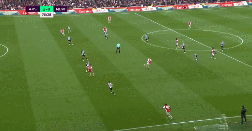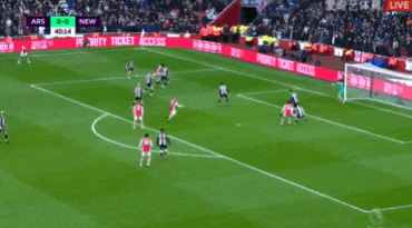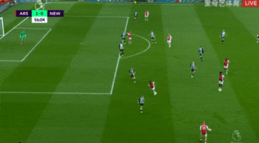 第56分钟,阿森纳前场左路连续完成精彩配合,萨卡禁区内小角度低射打破僵局!阿森纳1-0纽卡斯尔联。