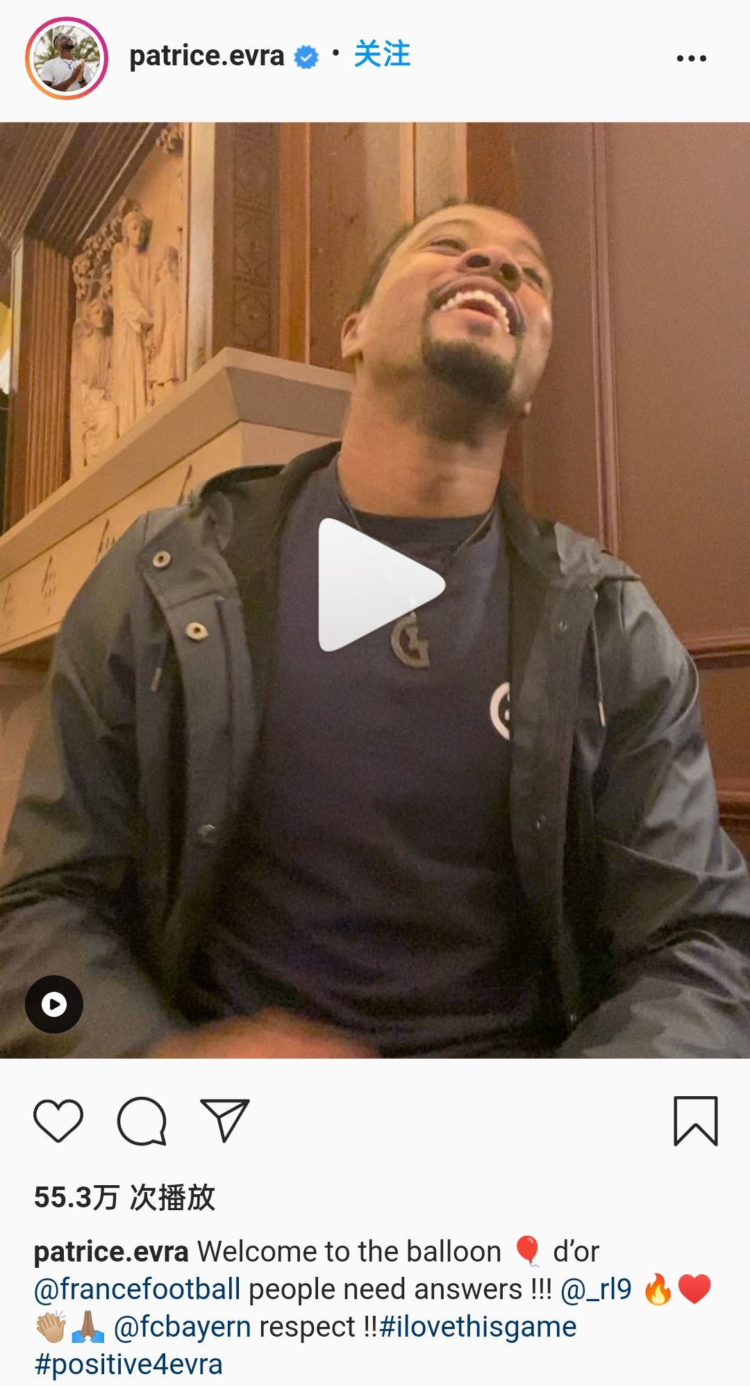 昨日,梅西获得个人第七座金球奖,莱万在金球奖排名中排在第二。曼联名宿埃弗拉在个人社媒上发布一段6分多钟的视频表达对金球奖评选的不满。