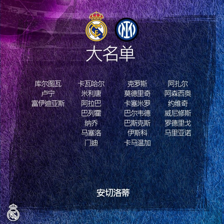 北京时间12月8日04:00,欧冠小组赛第6轮,皇马将在主场迎战国际米兰,目前皇马在积分榜上有2分的优势,此役打平即可以小组头名的身份晋级。赛前皇马公布了本场比赛的大名单,阿扎尔入选,本泽马因伤缺阵。
