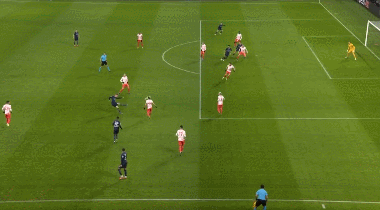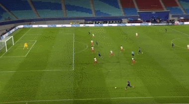 第71分钟,福斯贝里左侧横敲,A席中路得球稍作调整低射破门再下一城!RB莱比锡2-0曼城!