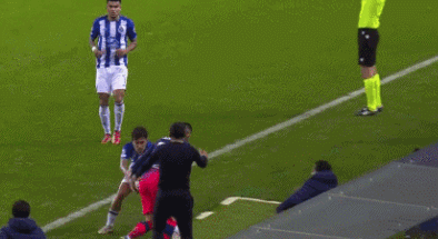 见状,当值主裁立即向卡拉斯科出示了红牌,令其离场。当时马竞仅1球领先,晋级形势不容乐观,但波尔图并没有抓住11打10的机会扳平比分,由于卡拉斯科的冲动犯规导致场上火药味浓重,波尔图球员持续与马竞球员纠缠斗殴。